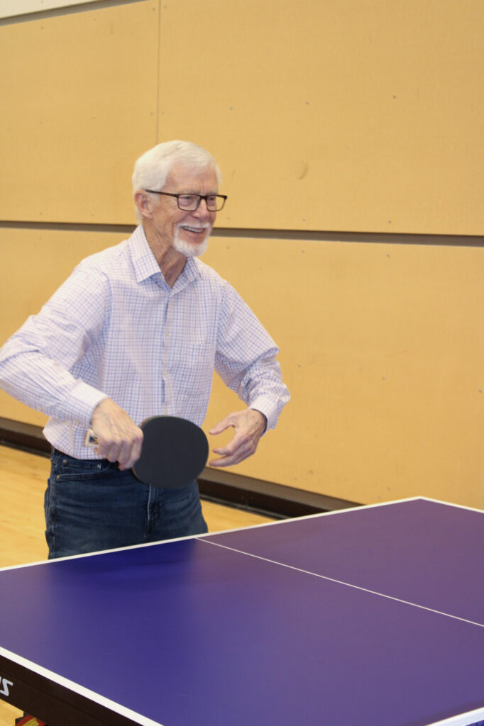 For Richard Fisher, the weekly dementia-friendly Fun!-Damentals of Table Tennis program is a time to bond with his son-in-law, Volker, while enjoying a sport he has loved for years. It also offers opportunities to meet others living with dementia and learn more about the disease and the supports available through the Alzheimer Society of Manitoba.